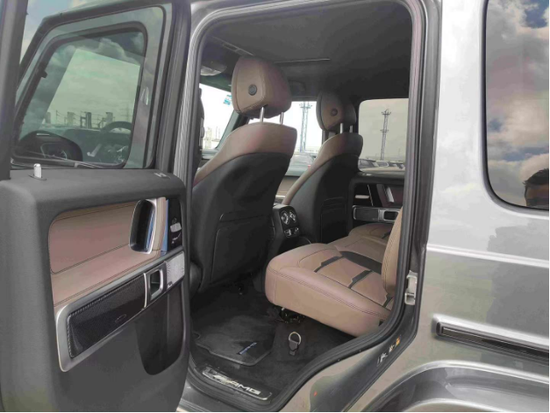 全新22款奔驰G63AMG豪华精致的真皮包覆提供了足够的舒适性和支撑性,通风和加热功能让乘客免受高温和寒冷的煎熬。中控台多处均采用碳纤维材料覆盖,带彩色TFT显示屏的AMG仪表盘、AMG主菜单和单独的挡位显示器以及采用白色照明的AMG门槛。名贵的选材及精湛的内装令人拍案叫绝。
