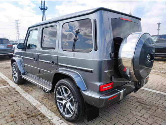 全新22款平行进口奔驰G63硬朗的方盒子造型,没有多余的弧度、没有任何曲线,眼光所及满是直锋利的线条,就连车顶上的导雨沟槽,也是沿着车顶周围一圈,分外焊接上去的金属槽,车门搭钮更是绝不虚心,硬挺挺地屹立在门缝之外,外凸的轮拱、造型如同 梯形的引擎盖。