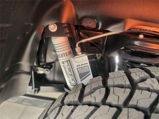 全新23款道奇公羊霸王龙除了强大的动力外,性能版的Ram 1500TRX和越野性同样是一流的,车辆从地板的间隙达到了28cm,接角是30.2,出发角是23.5,通过角是21.9,涉水高是81.28cm,可以对应大部分区间,另外,新车搭载了来自Bilstein的自适应减震器,前后轮的行程达到了33/36cm