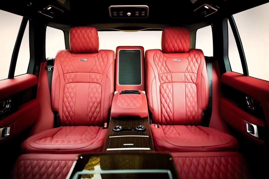 全新路虎揽胜皇家一号后排一米八的身高腿完全伸直还有很大空间,平躺着都可以,隔断可以升降和雾化,也不用担心隐私问题,三联表让你在后排也能知道这台皇家一号的工况,路虎的英文字母镶嵌在一块实木当中,一块IWC的钟表造价也是不菲,路虎皇家一号所用的品牌都是最顶级的。