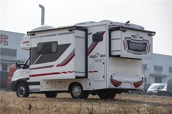 大家好,我是小魏。关注中国房车市场以及市场头部品牌的读者一定对瑞弗房车不陌生,瑞弗旗下的多款B型房车在最两年算是打出了名堂,吸引了不少眼球,而其C型车V820系列更是品牌经典产品之一,本文我们一起来了解一下瑞弗房车V820巅峰版。车辆基于中国精湛的技术工艺以及北美高端的制造经验,采用了CAE的设计数据开发且塑造了精准的左右配比,打造家庭、高端酒店式的舒适体验。从整车的外观来看,车头部分使用了大额头流线型的设计,保证内部空间的同时,可以降低风阻,减少油耗。