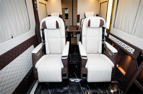进口奔驰高顶斯宾特座椅旋转对坐搭起小桌板,桌板的贴心的设计四个下凹杯托,或是咖啡酒水的陪伴交流更加畅顺。免提前后对讲系统、带隐私门帘,保证私密空间的同时也能顺畅交流。
