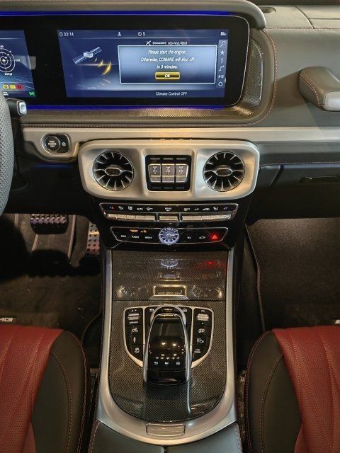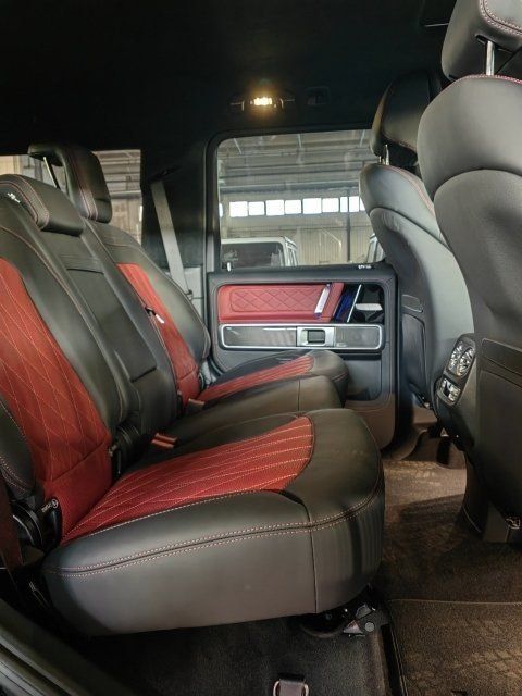 23款奔驰G63档次、质感和科技配置都明显提升奔驰G级 (配置|询价)(配置|询价)的内饰相比老款有了明显的提升,采用了奔驰最新的双屏幕式设计,全液晶仪表盘和中控台屏幕都达到12.3英寸,同时内饰质感和工艺都有了很大的进步。中控涡扇式空调出风口也颇具设计感,车内的高档皮革内饰以及标有V12钻石图案设计的座椅、车门面板和脚垫,无不彰显着车主的尊贵身份。