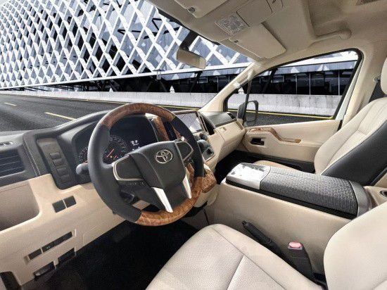 外观方面:全新丰田海狮备有六档自动变速系统,不但省油,而且能输出强大动力,排气标准更达欧洲环保第三级海狮流线型高身车顶及大气方正的车头计划,流通而富有宁静感,让人倍感信任。车身颜色我们做了双拼的处理,驾驶室内配置了停车辅助感应器、离子空气滤清器及冷藏保温箱也令人耳目一新 内饰方面:车厢设计宽敞,乘客区中间有走道隔开两边座椅,以便利乘坐及进出。所有座椅为高级织物并配备头枕,每个头枕均可调较高度,而椅背的角度亦可调节,座椅构造更符合人体曲线,令乘坐特别舒服。椅背设有扶手,照顾乘客行车以及上下车时的安全。