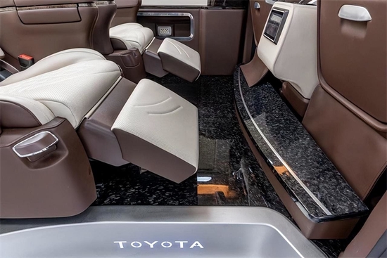 丰田海狮内搭载32寸高清液晶电视,液晶触控屏调节车内操作,让商务生活更充实。车顶设计浩瀚星空顶氛围灯,灯光多色可调。整车内饰车窗选用高级麂皮绒窗帘,柔软舒适。座椅选用高级航空座椅,通风加热按摩带腿托。座椅扶手触感极佳,调节座椅更加便捷。
