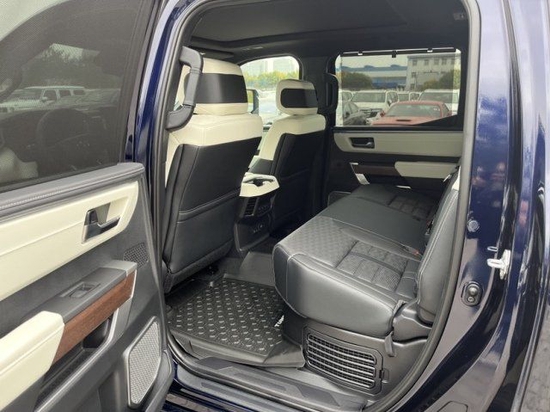 23款丰田坦途车内乘坐、后排座椅宽大,足以满足身高195cm的贵宾,第二排座椅可以完全折叠收起,为乘客提供更宽敞的腿部空间,已经达到了中大型车的水平,完全可以满足舒适乘坐的需求,部分特殊的装载给您的路途更添信心。