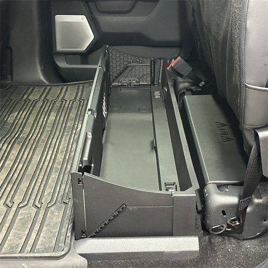 在后排座椅下方,猛禽标配一个工具仓,用于存放拖车绳、千斤顶和铁锹等,如果遇到陷车等情况可以及时接受救援。
