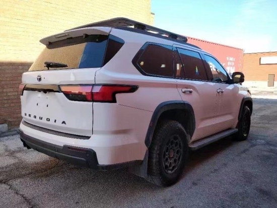 2023款全新丰田红杉,车身侧面来看,新车拥有一个非常庞大的身躯,采用了隐藏式的A、B、C柱设计,营造出悬浮式车顶的样式,外后视镜壳还有银色与黑色可选,提升了该车的时尚感。另外,新车腰线贯穿整个侧面,并在前后翼子板处采用内凹式设计,营造出了极其宽厚的视觉效果,再搭配六螺栓孔固定的20英寸密条辐轮圈,整体搭配展现出了陆上霸主的气息。