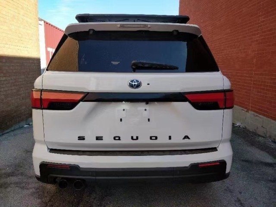 2023款全新丰田红杉,车尾部分,新车配备了一个小型车顶扰流板以及后雨刷器,尾灯样式也非常粗壮,并由一个同样粗壮的装饰条相连接,并与灯组内部的LED光源形成贯穿式设计,提升了尾部的横向视觉效果。此外,新车牌照区域大面积内凹式造型以及后备箱门上的“红杉”英文字样,也进一步提升了新车的层次感与辨识度。