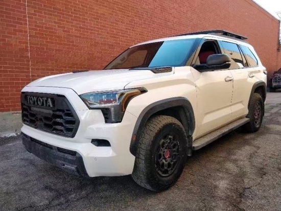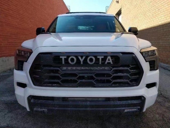 2023款全新丰田红杉,外观方面,新车前格栅、前大灯组的设计样式与全新坦途基本相同,不过全新红杉将提供多种不同风格的前脸设计。相比坦途,红杉的前格栅并未与前包围相连通,根据不同配置车型中网有镀铬蜂窝网状、黑色波浪形以及条幅形三种风格,而前包围样式更加粗壮,采用了分层式设计并加入了下护板,在前护板区域的两侧还配备了LED雾灯组。