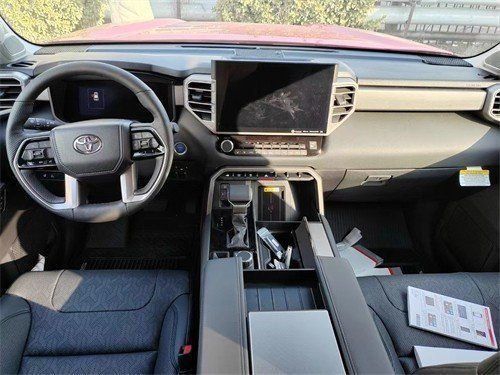 23款丰田红杉车内采用了大量软质材料包裹,部分区域还加入了缝线处理,显得档次感和质感十足。另外车内采用的是四辐式多功能方向盘,并保留了很多物理按键,足以满足驾驶时想要的操控感,车内的科技氛围是通过12.3英寸的全液晶仪表盘和14英寸的中控屏来实现的,中控屏两侧的空调出风口,虽然没有采用时下流行的贯通式设计,但在中控台上对称排列也别有一番风味。