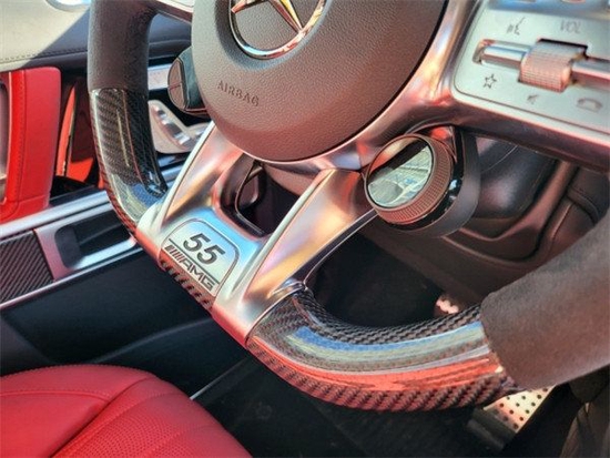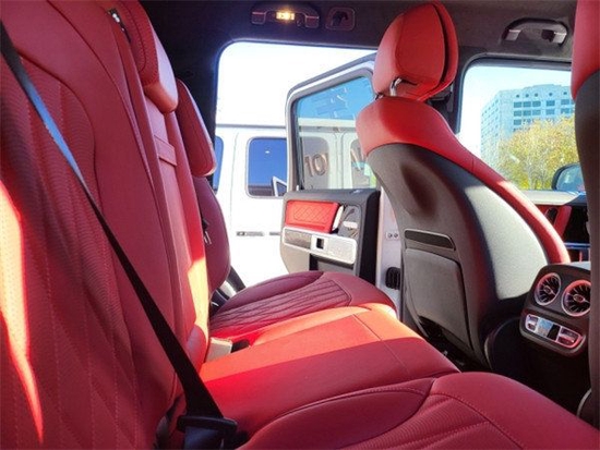 2023款奔驰G63豪华精致的真皮包覆提供了足够的舒适性和支撑性,通风和加热功能让乘客免受高温和寒冷的煎熬。中控台多处均采用碳纤维材料覆盖,带彩色TFT显示屏的AMG仪表盘、AMG主菜单和单独的挡位显示器以及采用白色照明的AMG门槛。名贵的选材及精湛的内装令人拍案叫绝。