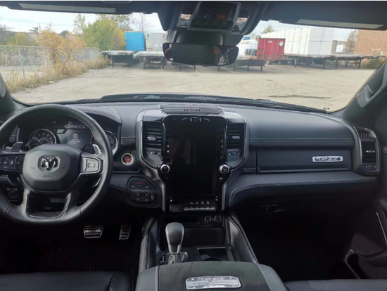 22款道奇霸王龙在内饰部分进一步强化了其高性能版本的形象,中控台和座椅随处可见的TRX标识便是最好的例证。同时,作为道奇家族的旗舰车型,新车还配备了12英寸竖置中控屏幕,除了支持蓝牙、导航和车载Wi-Fi等常见功能,还支持Apple CarPlay和Android Auto手机映射。