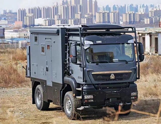 卫生间采用干湿一体式设计,内部配备赛特福德马桶、洗手池、梳妆镜、换气扇、淋浴花洒等;大宇3kg洗衣机免去了手洗的时间,提高了生活效率;水路系统方面,400升净水箱、75升灰水箱。整车上下水系统做了防冻处理,更好的适应极度严寒等恶劣环境。