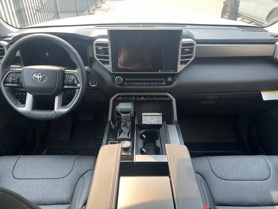 2023款丰田红杉车内采用了大量软质材料包裹,部分区域还加入了缝线处理,显得档次感和质感十足。另外车内采用的是四辐式多功能方向盘,并保留了很多物理按键,足以满足驾驶时想要的操控感,车内的科技氛围是通过12.3英寸的全液晶仪表盘和14英寸的中控屏来实现的,中控屏两侧的空调出风口,虽然没有采用时下流行的贯通式设计,但在中控台上对称排列也别有一番风味。