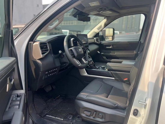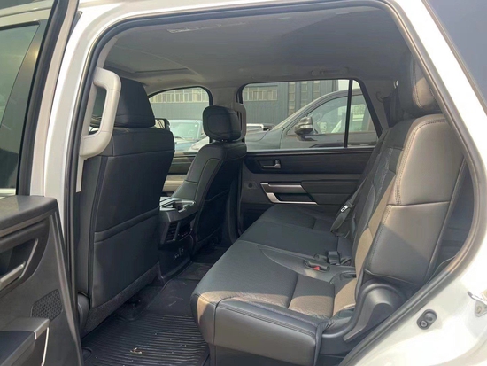 2023款丰田红杉内饰的实用性与空间利用率在这代红杉身上均得到提升,坐进车内,第一感受就是大,前排的两个大尺寸的真皮座椅,自带打孔透气皮料,四幅式多功能方向盘,握在手里的质感不错,转向也没有想象那么重,T型的中控平台,尺寸方面也比一般车型大不少,14英寸的中控触摸屏,集成了几乎所有的影音娱乐以及车身控制功能。座椅通风加热按摩,第二排独立座椅设计,第三排的空间上提升得尤为明显,三排座可以用大沙发来形容。