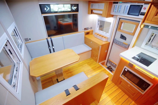 肯定很多小伙伴非常关心整车核载几人,非贯通核载3人,贯通核载6人,旅居车公告,也就是说可与小客车同享节假日免费通行政策,满足国六排放。生活区加装了内部通话系统,便于交流;全部采用美国进口红橡实木家具搭配拉丝铝板材质,外加环保型游艇专用柚木地板,并辅以保温隔音软装和各种灯源烘托,不仅提升了整体空间质感,同时也符合用户对起居空间的标准。顶部吊柜和一台力直流变24V频空调不仅满足行、驻车双用,开启后可以输送风到车内各个角度;取暖方面,单独配备一部伟巴斯特燃油暖风热水一体机供用户使用。