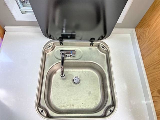 厨房对侧卫生间,采用一体封闭式设计,防水防腐防静电板材打造,空间宽敞配置丰富。设备安装有赛特福德房车专用抽拉式马桶、节水型淋浴花洒、陶瓷洗脸池、高脚水龙头、美容镜、浴帘、防水照明、通风换气窗、双向换气扇、置物架等洗漱功能。车尾主卧,采用横置子母床设计,在床铺内侧,还安装有组合式床头柜,便于存放个人物品和衣物等。同时,在床尾和右侧配备有通风换气窗,顶部带有换气扇,加强主卧空间的采光和换气效果。