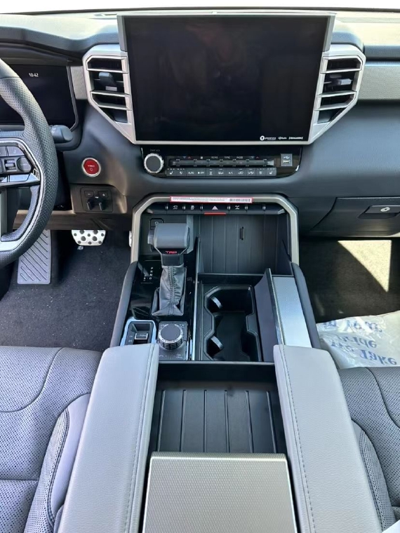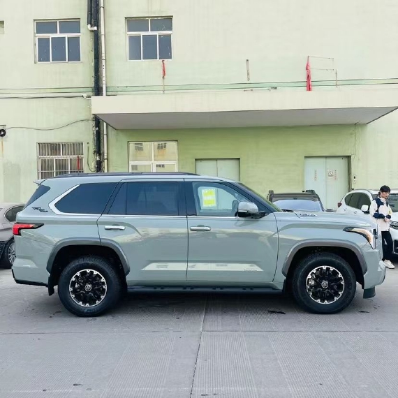 2023款丰田红杉前脸看起来和坦途基本一样,特别是大尺寸的横向进气格栅以及两侧的L形大灯组,不过格栅和下包围并未像坦途那样是相连的,但却显得车头更加霸气,而且还增加了些层次感。
