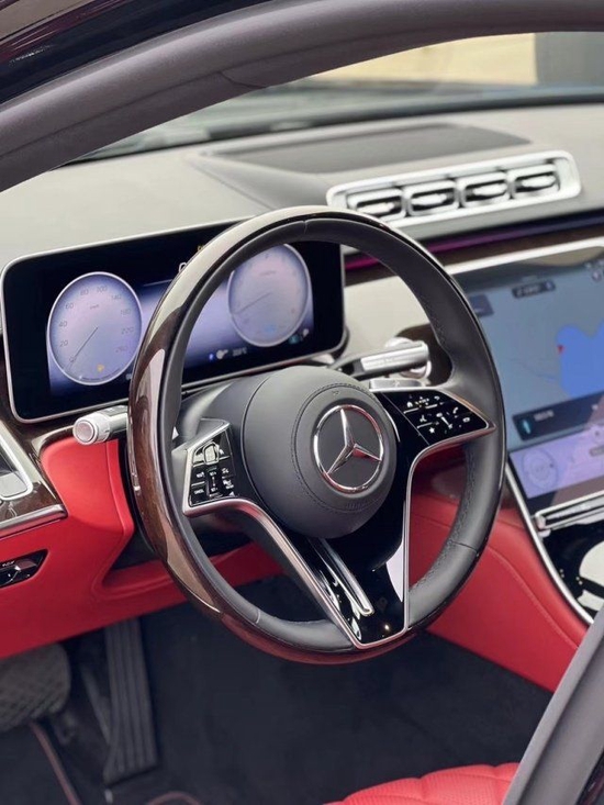2022款平行进口国六奔驰S580 奔驰S580的内饰设计,对于许多消费者来说应该是不太陌生了,采用了最新的数字豪华座舱。任经理13836729331 (电话同微信)中控台是T型布局,配备了一块12.8英寸中控屏,以及12.3英寸的悬浮式仪表盘。用料部分可以说是极尽奢华,方向盘是木质外圈、真皮内圈,配备主动式多仿型座椅,采用手工缝线工艺,具有加热、通风、按摩等功能。在匹配上全景天窗