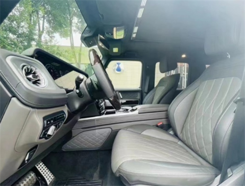 23款平行进口奔驰G400D柴油 在内饰方面豪华气息浓厚,仪表盘采用13.2的液晶显示屏,粗犷之中又不失精致,宽广的空间, 让人瞬间有一种自由奔放的感觉,大量的真皮设计以及一些恰到好处的点缀材质,尽显高贵奢华。中控仪表的设计又很有科技感。