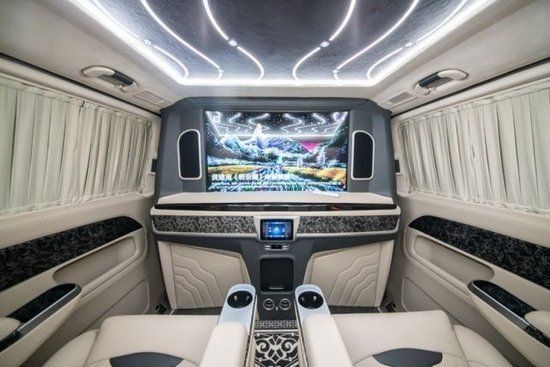 1.V级格栅包围(选配:可升级迈巴赫格栅包围及银河格栅包围) 2。鹰眼式LED大灯 3.V级轮毂(选配:迈巴赫各款轮毂可选) 4。车身镀铬亮条 5。五门(三门电动) 6。折叠后视镜 7。九速空气悬挂底盘升降 8。古巴影木装饰 9。多功能方向盘 10。智能语音 11.V级中控台包覆 12。门板包覆 13。车载双向冰箱 14。外接电源接口 15。定制版铝合金脚踏。