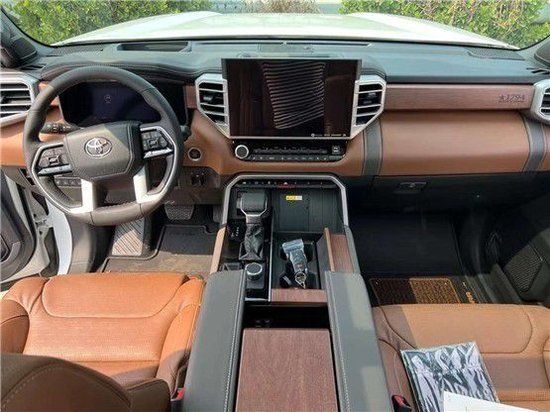 2023款丰田坦途采用悬浮式中控大屏设计,中控屏从低配版8英寸到顶配版的14英寸,并且还提供有12.3英寸的全液晶仪表盘可供选择,支持CarPlay和 Android Auto系统。值得一提的是,新车全系标配Toyota Safety Sense 2.5智行安全系统,具备拖挂模式、蠕行模式、越野模式等多种驾驶模式。