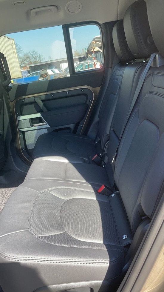 23款路虎卫士130柴油版车型长宽高尺寸分别为5,358mm(含备胎)*2,105mm(后视镜展开后)*1,970mm,轴距为3,022mm,在后部将车身轮廓延长了340mm,带来八座(2+3+3)的超大空间。其中,专门设计的第3排座椅座垫宽度达1,200mm,有效腿部空间达 804mm,带来宽敞舒适的乘坐感受。后排还支40:20:40可折叠分离,在座椅直立情况下,后备箱容积达到389升;在座椅折叠情况下,后备箱容积可达1,232升,装下两头雄狮应该不是什么难事。