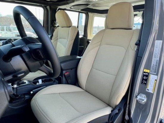 2022款吉普牧马人内饰采用双色设计,采用三幅式多功能方向盘设计,配备双圆形机械仪表盘,中控台配备内嵌式触摸屏设计,下方保留了大量实体按键。2022款吉普牧马人入门版配备7英寸信息娱乐系统显示屏,高配版8.4英寸内嵌式触摸屏,集成地图导航功能。