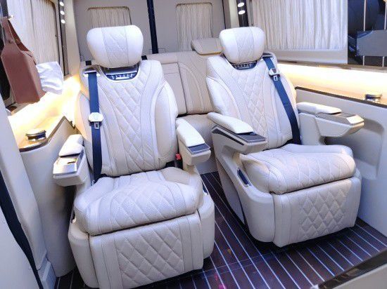 奔驰斯宾特后排座椅除靠背调节、前后移动,平放当床竟然还带按摩功能,尽显高大上有木有,多体贴,多可人,最后排客人完全无压力。 最值得一提最豪华还得是后排座椅,第三排配有进口航空座椅,厉害之处是这个座椅除了按摩通风加热,电动前后调节,电动腿托。23款奔驰斯宾特头顶可改成浪漫情怀满天星顶灯,犹如在静寂的夜空中翱翔。脚踏高档柚木地板,坐在私密的移动包厢内,老板能享用彻底私密的影音包间,具有如家般的精致小生活。