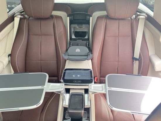 23寸轮毂,黑曜石金属车漆,后部头等舱,后部折叠桌板,木质多功能方向盘,钢琴漆流动线条饰板,皮革纳帕桃花心木棕色/玛奇朵米色,酒杯加热,香槟架,车载冰箱,温暖包,空气平衡套件,活力套件玛奇朵米色超细纤维顶棚,后排娱乐,抬头显示,MBUX 多媒体系统,电子主动车身控制(脱困模式)