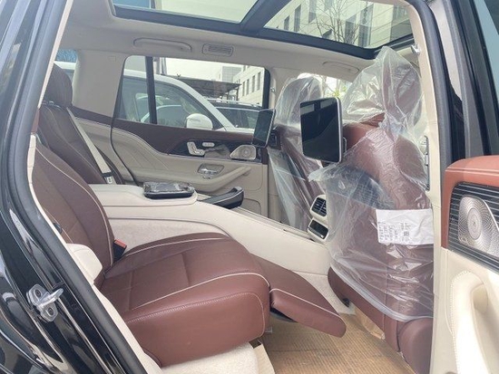 23款迈巴赫GLS600座椅配备腿托和头枕,同时支持加热和通风等舒适性配置,后排空间最大能达到1.34米。后排配有专属后排娱乐系统、独立空调、触控平板、遮阳帘、冰箱、恒温杯托、香槟高脚杯的储物箱等。