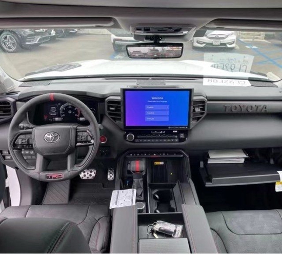 丰田红杉车内采用了大量软质材料包裹,部分区域还加入了缝线处理,显得档次感和质感十足。另外车内采用的是四辐式多功能方向盘,并保留了很多物理按键,足以满足驾驶时想要的操控感,车内的科技氛围是通过12.3英寸的全液晶仪表盘和14英寸的中控屏来实现的,中控屏两侧的空调出风口,虽然没有采用时下流行的贯通式设计,但在中控台上对称排列也别有一番风味。另外顶配Capstone车型的内饰将会采用更加豪华的黑白配色方案,并搭配胡桃木装饰面板。