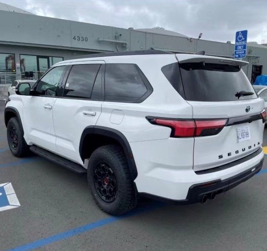 23款丰田红杉侧面上看,设计师还为这款SUV涂黑了A柱和肌肉发达的挡泥板,车轮开口上方有一个突出的脊,D柱的底部向前倾斜