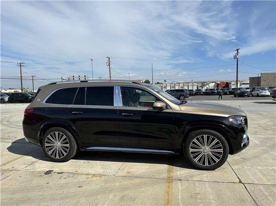 迈巴赫GLS600 (配置|询价)采用立标设计的SUV车型,车身侧面轮廓则与标准版GLS (配置|询价)车型无过多区别,依旧是优雅不失霸气,为彰显该品牌“终极奢华”的设计风格,车身增加了诸多镀铬装饰,同时采用了大尺寸的专属轮毂,新车提供22、23英寸两种尺寸轮毂可选。