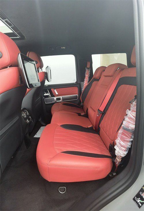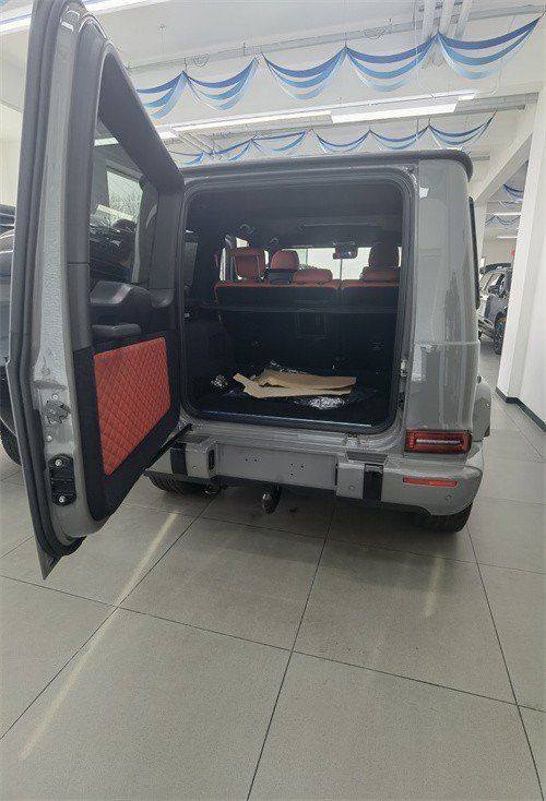 奔驰G350D 配置:18轮毂,红色内饰,核桃木内饰包,主动多功能座椅套件,升级独家内饰,大油箱(100升) 滑动天窗,前后隔网,64色环境照明,大屏,可拆卸Easy-Pack货舱盖,车道保持,停车套件带倒车摄像头,带有ESP®拖车稳定装置的拖车挂钩,后排侧气囊。