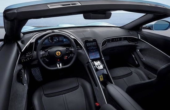进入车内,法拉利设计中心的设计师们采用了与法拉利Roma车型相同的设计理念。新车座舱基于自20世纪70年代以来跃马车型所采用的“双座舱”设计进行优化升级,为驾驶者和乘客打造互不干扰的驾享空间及区域。配置部分,新车配有纵向分布的8.4英寸中控大屏,并配备液晶仪表,方向盘上的跃马徽标以及诸多功能按键想必也会让一些朋友热血澎湃。