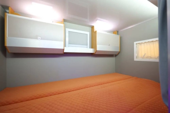 尾置横床可拓展,拓展后的空间非常充裕,可容纳多人休息,并配有豪华床垫带来舒适的睡眠体验;尾床侧方带有外推窗加强采光、通风,顶部储物柜丰富储物空间,不透光床帘有效保障内部人员隐私,私密性强。