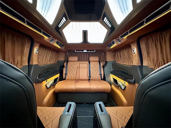 三排升级为一张沙发座椅,支持平躺180度,这使我们在车里休息非常舒适。同时,第二排座椅与第三排座椅旋转,形成对立的卡座,从而形成商业模式;即使用于家庭旅行,也可以增加儿童的娱乐空间。