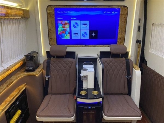 道奇公羊商务房车后舱内侧是隐藏式吧台座椅,旁边配有中央液晶屏总控制系统、KRUPS咖啡机、全自动即热式茶吧饮水机、VNICE恒温道奇公羊商务房车整车采用高端定制亚光黑漆面,商务隐私玻璃视觉上更加富有冲击的同时也增加了一丝贵族气质;底盘悬挂系统采用前高级重型悬挂,后稳定杆悬挂系统;提升了整车的整体协调度,突出了野性的一面,对于户外来说才是它真正适合的地方。酒柜等,功能齐全且实用,活动空间也非常充足,也就是说该车除了旅居属性外还兼具商务接待功能,可谓商务家用两用。