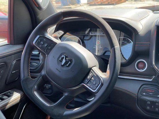 22款道奇霸王龙TRX内饰做工则完全摆脱了美式的粗糙感,边缘、接缝都处理的很精细,真皮座椅各自独立,配有加热、按摩等舒适功能,每个座椅独立配一个操控手柄,各项功能由乘坐者自己控制。