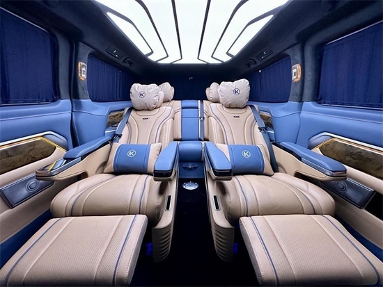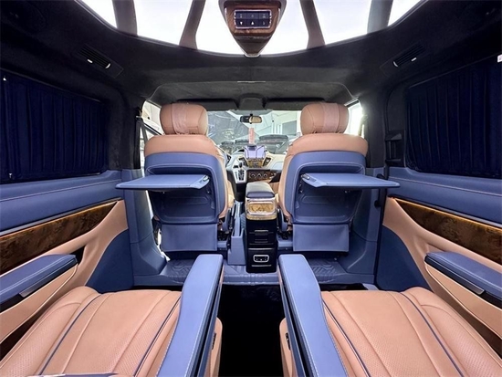 车厢内整个顶灯尺寸超大,从第二排一直延伸到车尾。光源多级可调,配合隐私玻璃和车身窗帘,共同实现车内明暗度整体可调。高顶车型的后排空调出风口和音响系统也全部集成在车顶上方。高端手感漆喷涂,手感相当细腻、平滑,外观雅致,耐划性、耐侯性、耐磨性优良。这些都体现了帝亚系列的细节做工和品质,营造了一个具备高级感的内舱氛围。