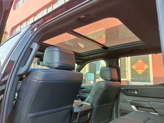 2022款全新丰田坦途TRD版皮卡车内乘坐、后排座椅宽大,足以满足身高195cm的贵宾,第二排座椅可以完全折叠收起,为乘客提供更宽敞的腿部空间,已经达到了中大型车的水平,完全可以满足舒适乘坐的需求,部分特殊的装载给您的路途更添信心。