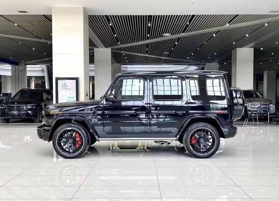 2023款加版奔驰G63 (配置|询价)直瀑式进气格栅可以说是家族最新的设计风格,也是在新车外观造型上与奔驰系列产品差异化最明显的地方。其中AMG系列的直瀑式格栅在新时代下的鼻祖可以说是AMG车型。它内部由12根竖置镀铬饰条组成、同时新车的保险杠进气口相比G500造型也更具有攻击性。此外,新款最大的轮圈尺寸提供22英寸可选进一步提升了它外观造型的彪悍程度。展车不仅采用了全新的车身涂装,还搭配了红色的轮圈装饰更加个性。