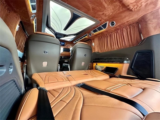 三排升级为一张沙发座椅,支持平躺180度,这使我们在车里休息非常舒适。同时,第二排座椅与第三排座椅旋转,形成对立的卡座,从而形成商业模式;即使用于家庭旅行,也可以增加儿童的娱乐空间。