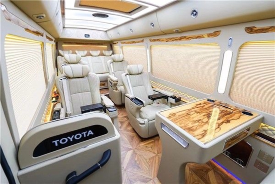 丰田考斯特内饰设计可满足客户的高品质需求,华通丰业全车加装了航空座椅,首长席办公桌,高密度阻燃地毯,还搭载了全新顶灯,能给客户带来不同寻常的舒适体验。因此,无论是商务需求亦或是家庭旅行,创新概念改装商务车丰田考斯特,都能使得客户感到非常满意。