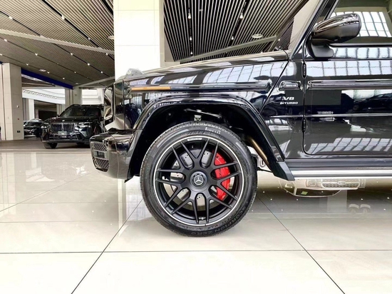 2023款加版奔驰G63 (配置|询价)直瀑式进气格栅可以说是家族最新的设计风格,也是在新车外观造型上与奔驰系列产品差异化最明显的地方。其中AMG系列的直瀑式格栅在新时代下的鼻祖可以说是AMG车型。它内部由12根竖置镀铬饰条组成、同时新车的保险杠进气口相比G500 (配置|询价)造型也更具有攻击性。此外,新款最大的轮圈尺寸提供22英寸可选进一步提升了它外观造型的彪悍程度。展车不仅采用了全新的车身涂装,还搭配了红色的轮圈装饰更加个性。