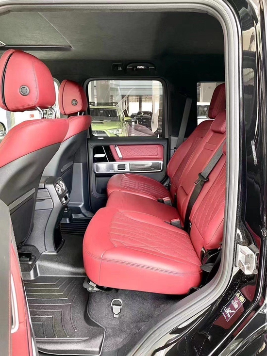 2023款加版G63 选装清单:独家(高级)内饰包、电控舒适控制、真皮包覆门把手、主动多轮廓座椅带按摩功能、真皮包覆仪表台、仪表盘上部真皮包覆、内饰设计优化、棕色胡桃木内饰组件、车门胡桃木装饰、多媒体控制台胡桃木装饰、AMG升级版夜色组件、熏黑前格栅、熏黑大灯、熏黑前后保险杠装饰、熏黑备胎罩环、熏黑前后车标、熏黑车身标识、熏黑后视镜、AMG特殊定制固态金属漆、炽焰红特殊金属油漆、AMG特殊定制固态金属漆(前保险杠 轮眉 熊猫配色)、定制MANUFAKTUR TARTUFO 真皮黑棕双拼内饰、22寸哑光熏黑轮毂、黑色前防撞杠。 联系电话 吴经理:13991305371(微信同号)