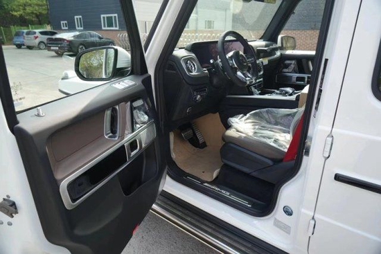 23款奔驰G63豪华精致的真皮包覆提供了足够的舒适性和支撑性,通风和加热功能让乘客免受高温和寒冷的煎熬。贵宾购车电话:17627885113 祝经理 (微信同电话)中控台多处均采用碳纤维材料覆盖,带彩色TFT显示屏的AMG仪表盘、AMG主菜单和单独的挡位显示器以及采用白色照明的AMG门槛。名贵的选材及精湛的内装令人拍案叫绝。