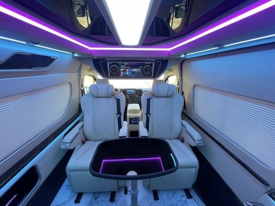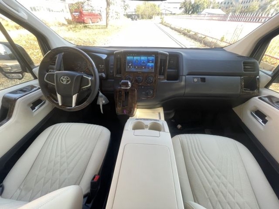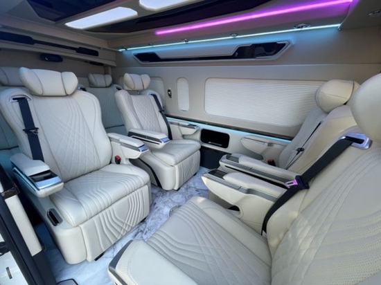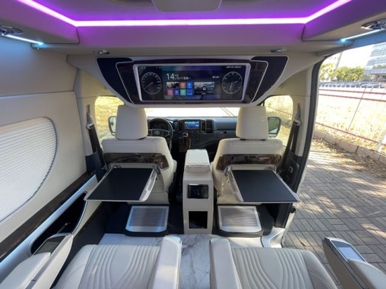 22款丰田海狮而且从车内座位的布局上我们可以发现,丰田海狮改装车采取的座位布局是由后排到前排为的座位安排呢,再加上主副驾驶席。但是我们也可以发现主副驾驶席是可以和乘客车厢之间用隔断隔开的,在隔断上我们可以安装大屏幕液晶显示屏,增加车内的色彩和装饰,不会显得单调突兀。